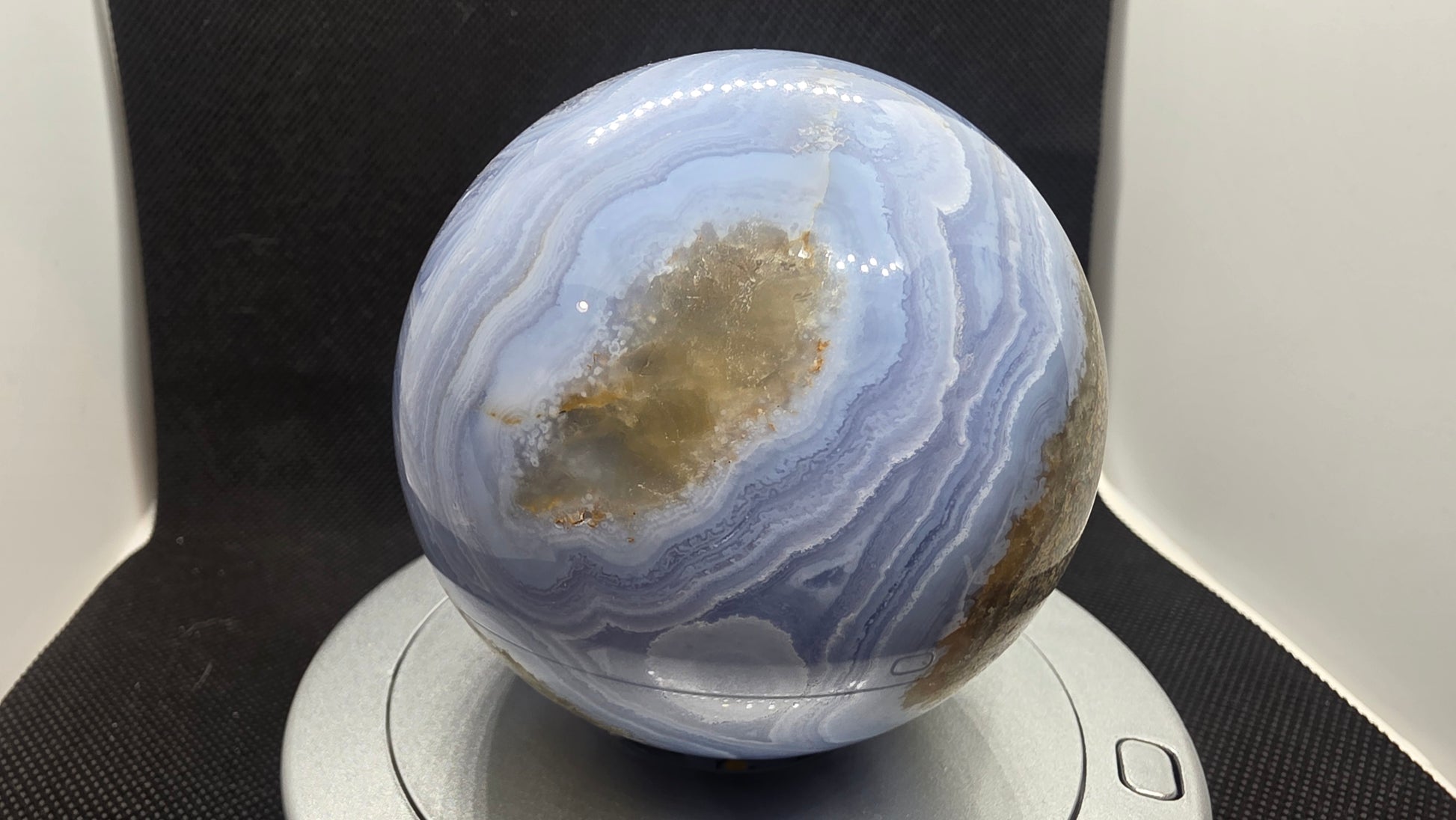 African blue lace sphere. 82mm or 3.25" approximately. 1lb 6ozs.