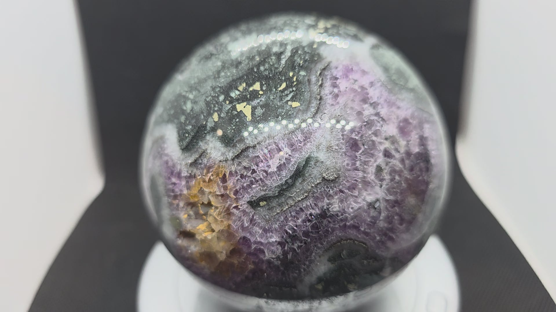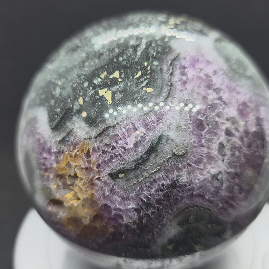 Auralite 23 is a rare, 1.5-billion-year-old crystal found only in Thunder Bay, Ontario, Canada. It is a type of amethyst containing a blend of up to 23 different earth elements and minerals, often featuring chevron layers