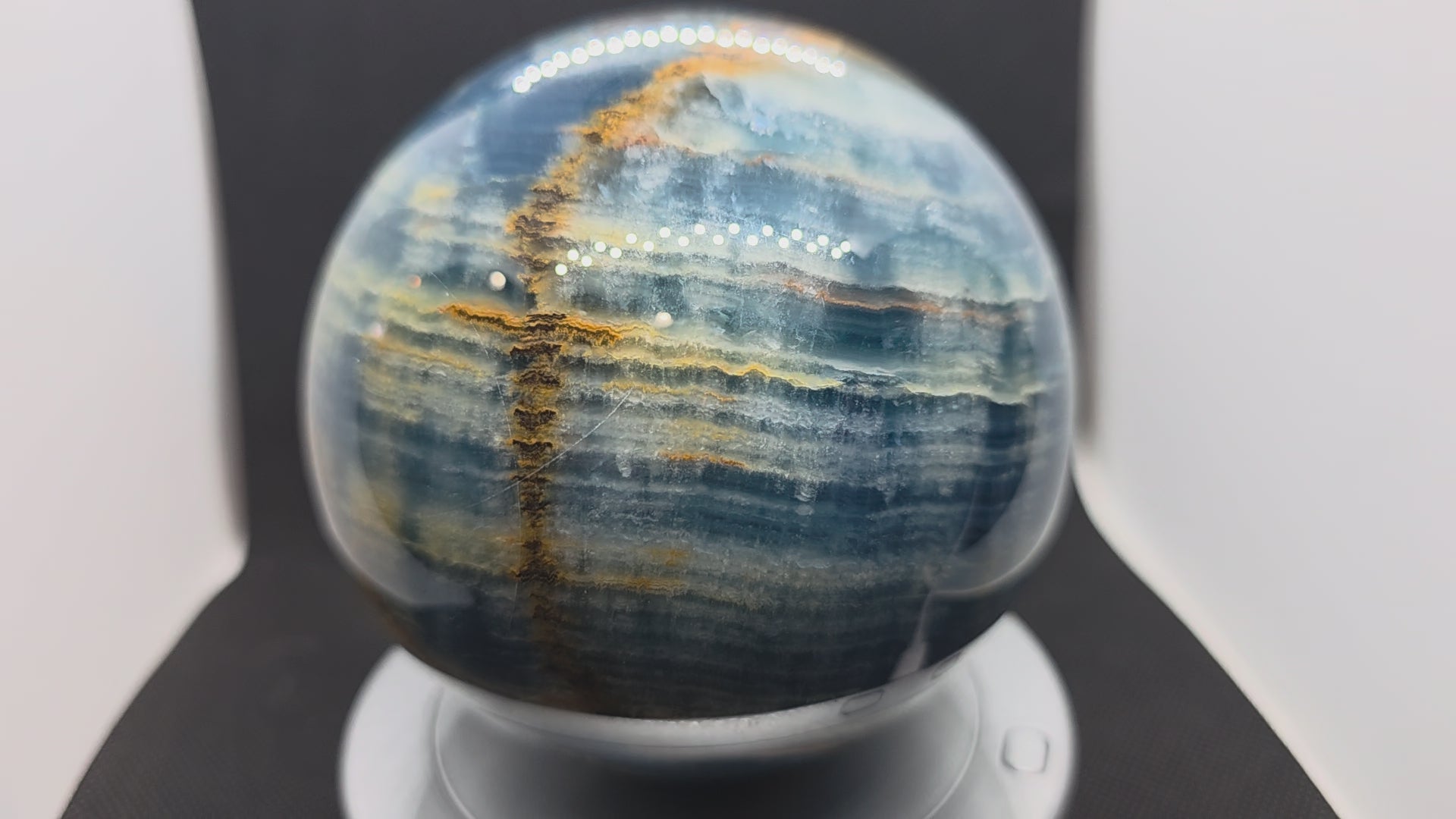 Lemurian blue onyx sphere. 105mm or 4.25" approximately. 3lbs 13oz.